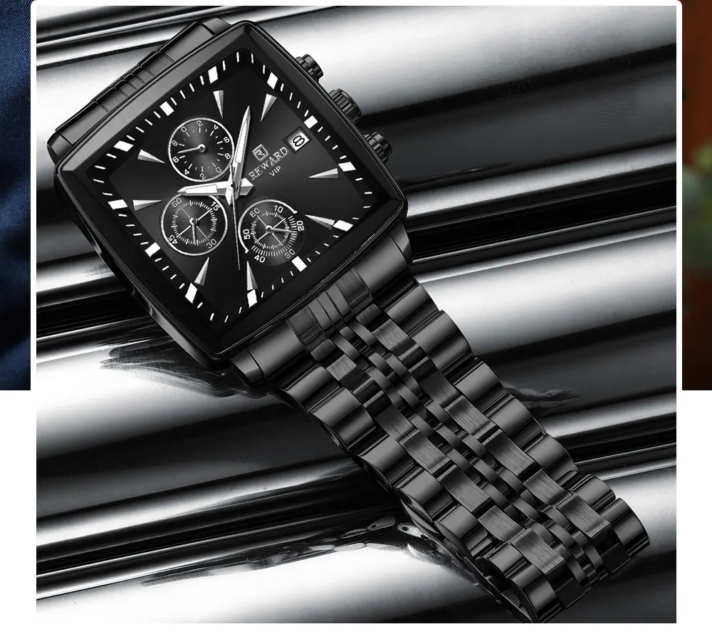 This is a REWARD-branded men’s wristwatch featuring a quartz movement 🕰 – ensuring reliable and accurate timekeeping with minimal maintenance 🔧.